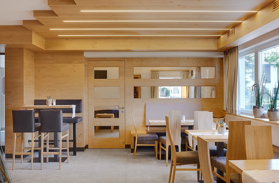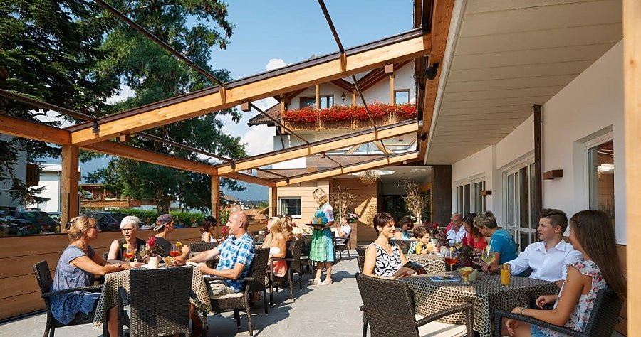 Neugestaltung des Eingangsbereichs, Modernisierung der Bar, Neubau eines Raucherraumes und Sanierung der Terrasse am Hotel Sun in Natz